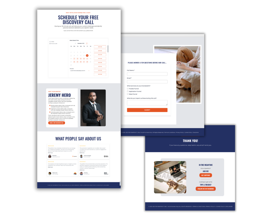 Get live setup help twice a week. Bring your questions, get unstuck, and have an expert walk you through customizing your funnels into your voice and brand colors.